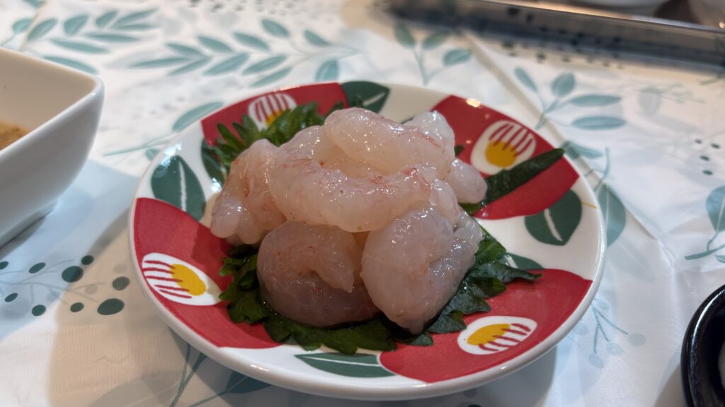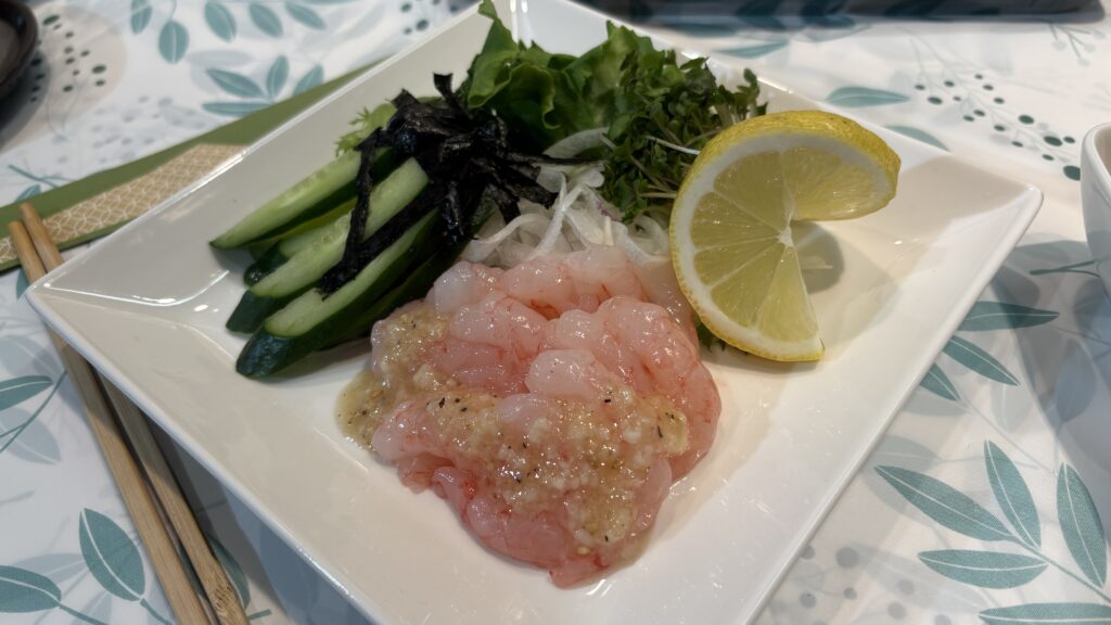 甘エビの甘味に対して柚子胡椒のピリッとしたアクセントがクセになります。